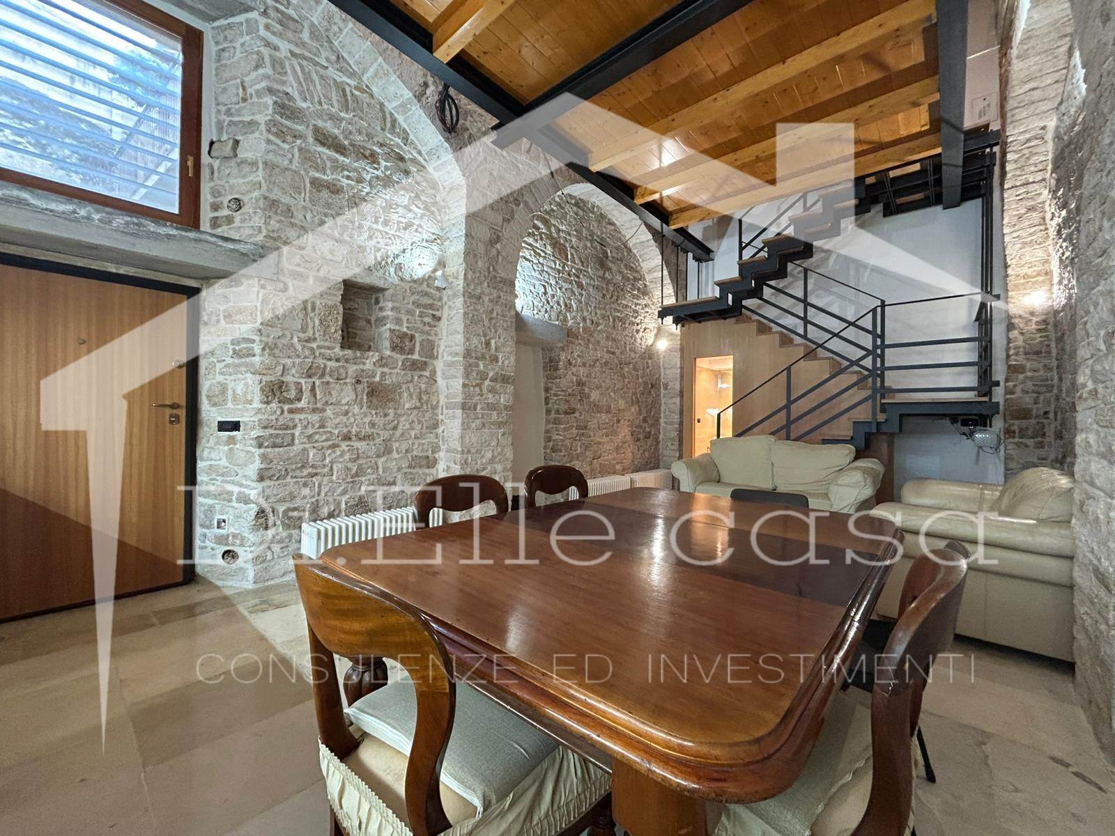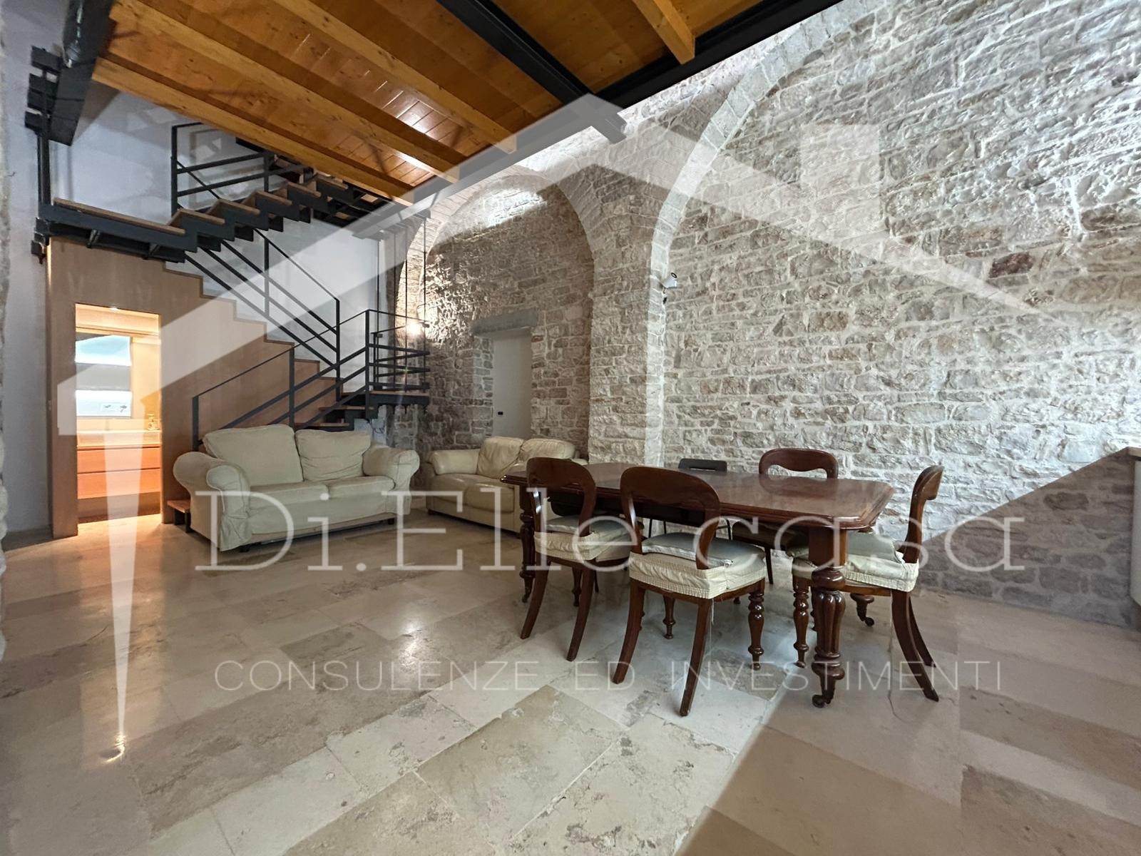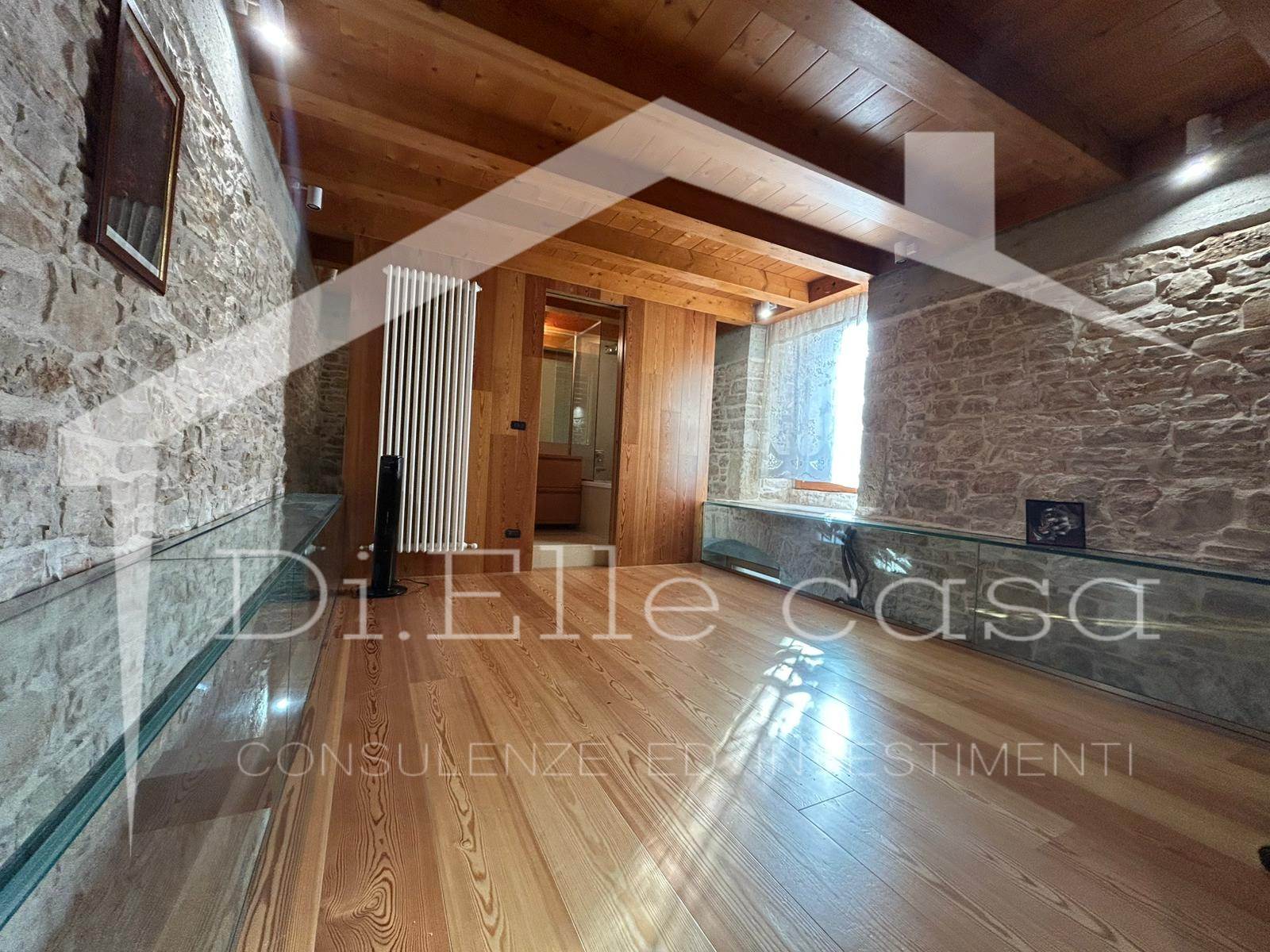 -piano terra, soluzione soppalcata in pietra completamente ristrutturata e finemente rifinita, con impianti nuovi, infissi, parquet e dettagli in falegnameria;